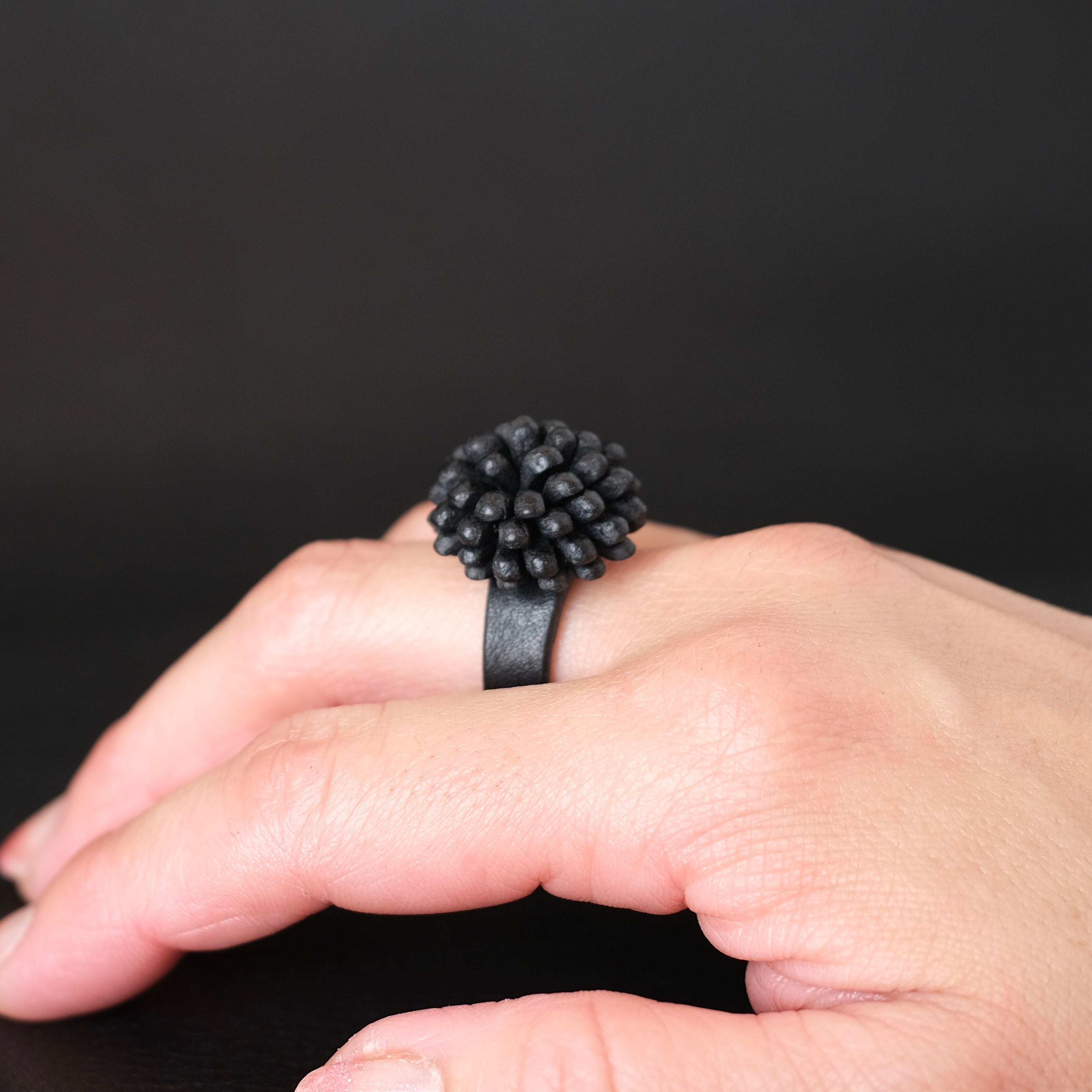 花のモチーフのリング【forest flower】、花びらの先端を丸く仕上げたバージョンです。