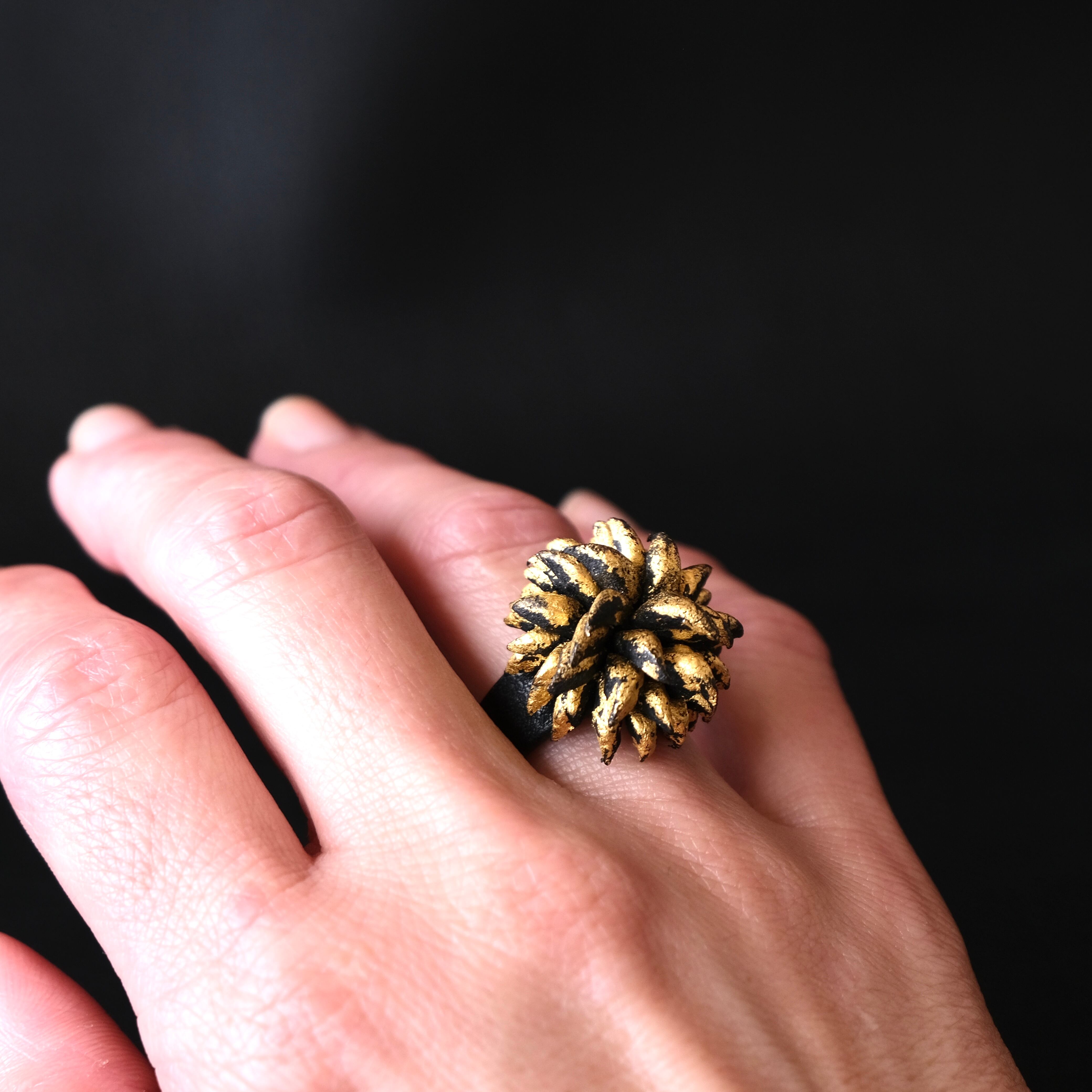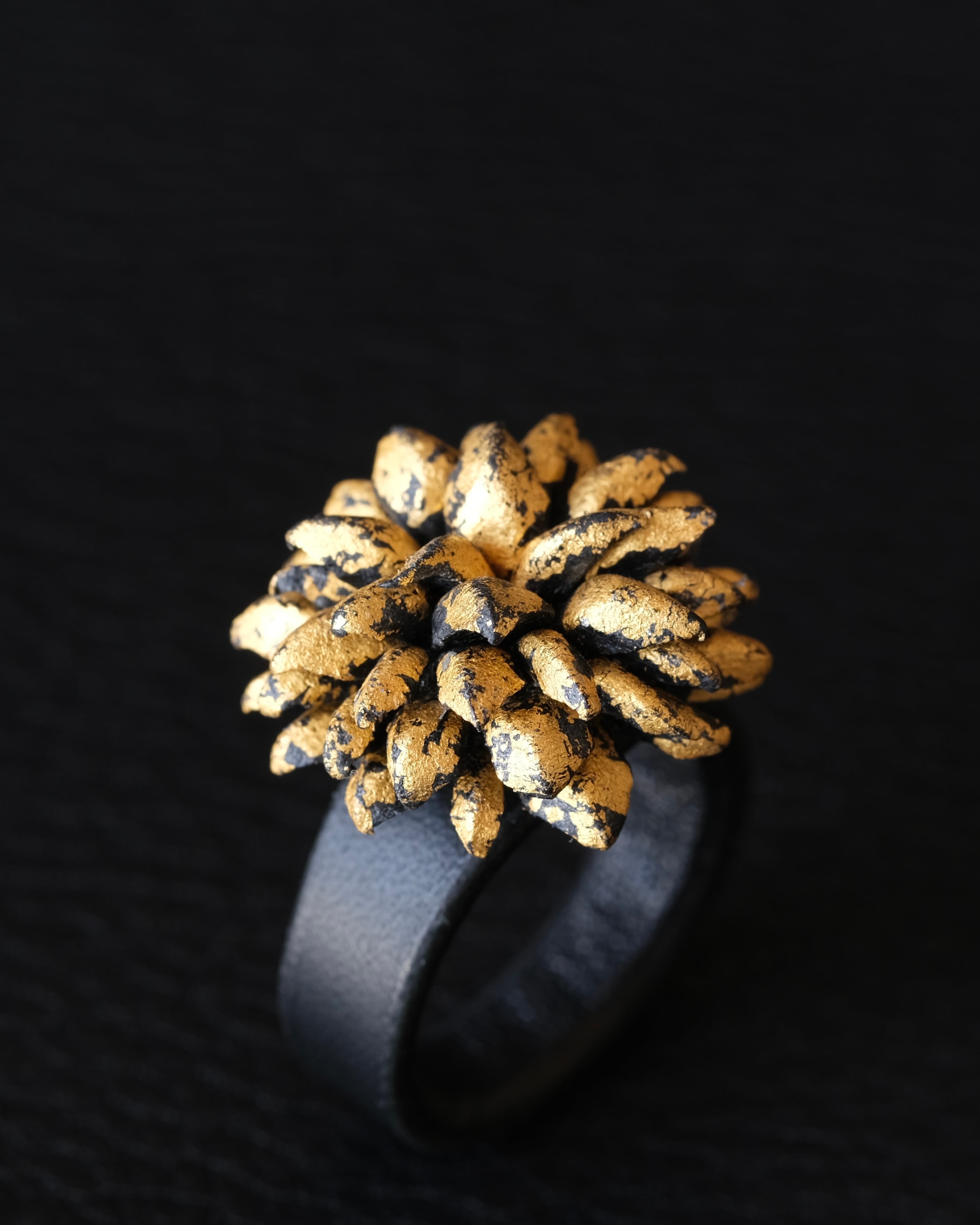 花のモチーフのリング、forest flower “ring1” に金箔を貼ったモデルです。