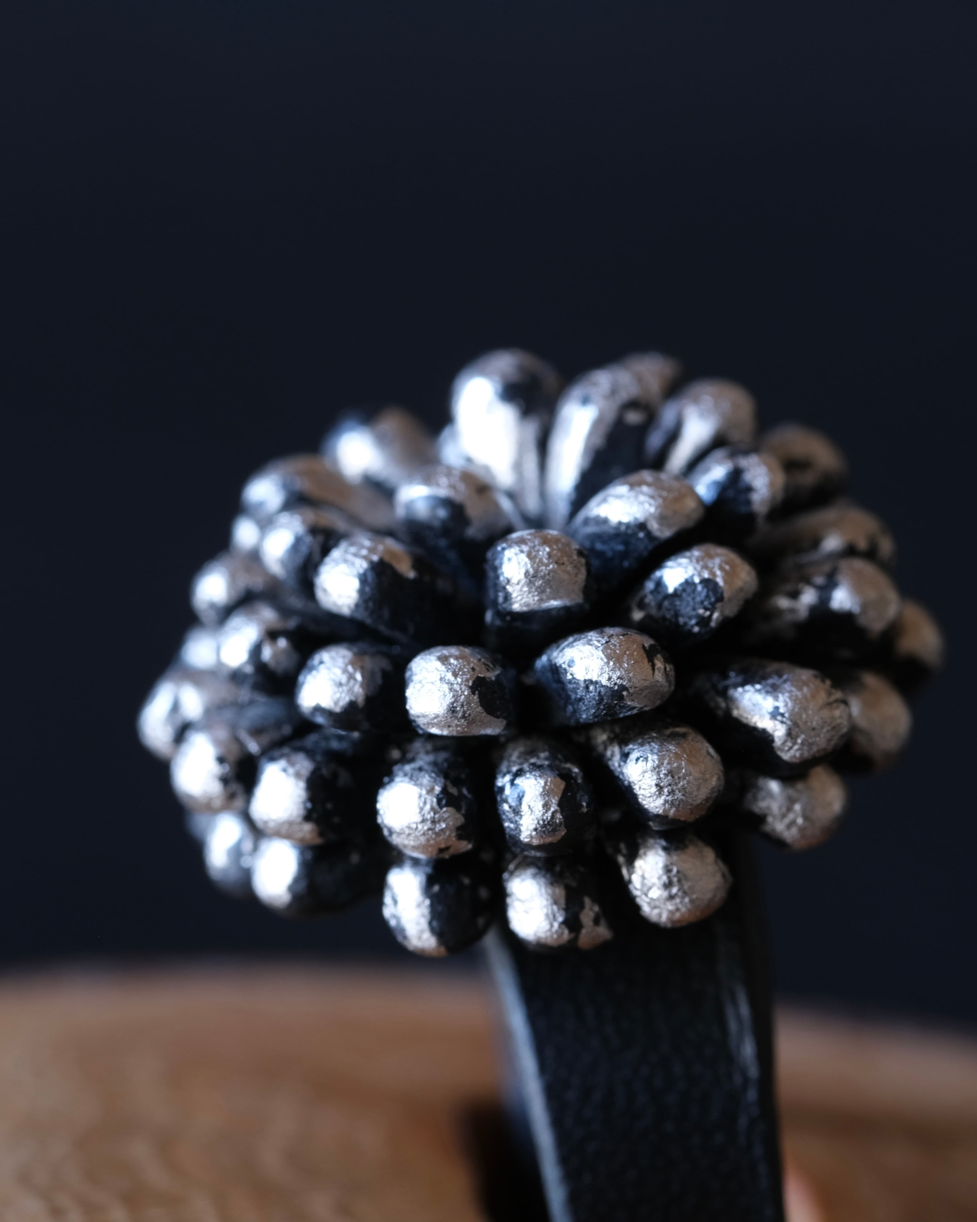 花のモチーフのリング、forest flower “ring2” に純プラチナ箔を貼ったモデルです。